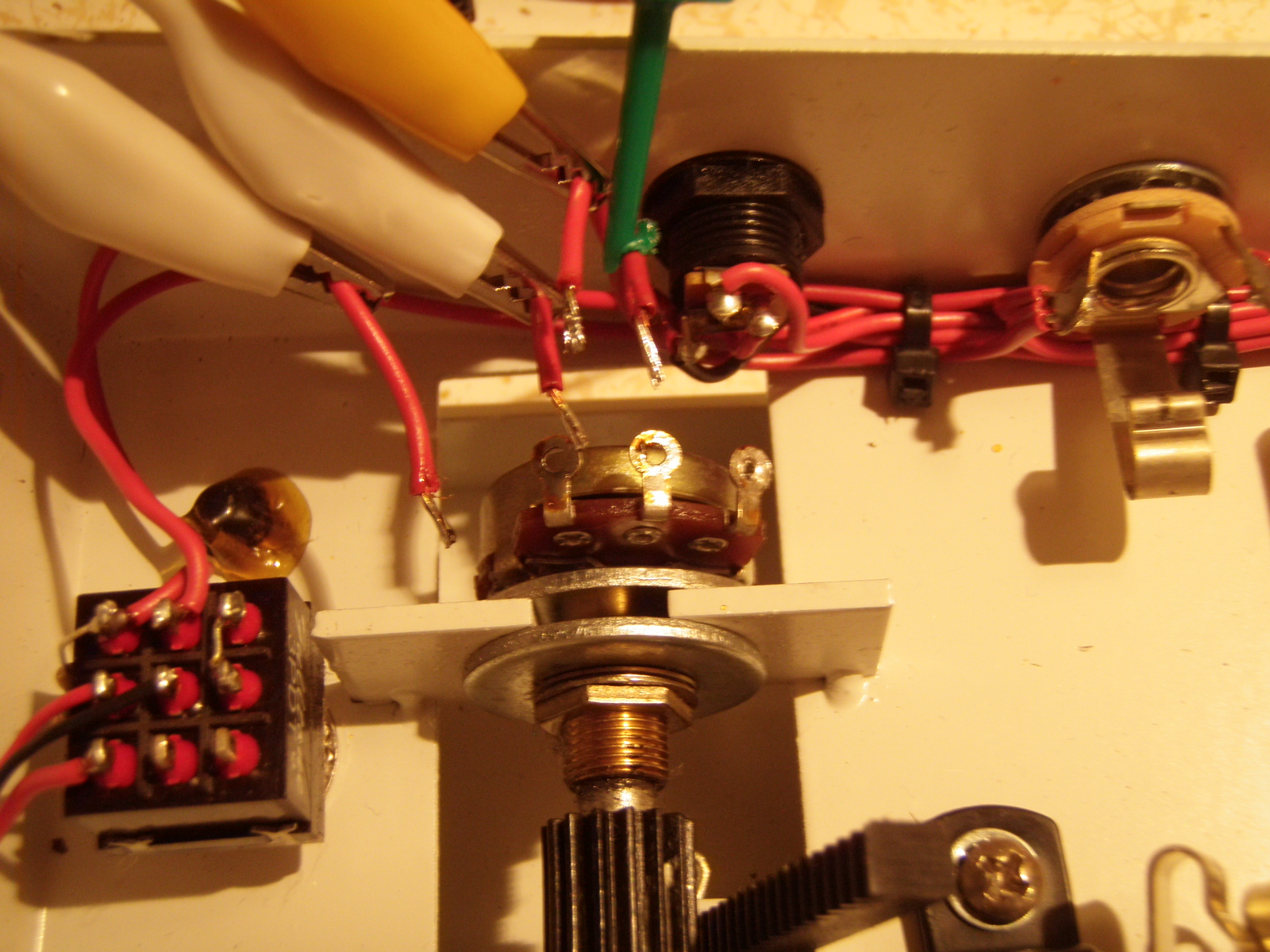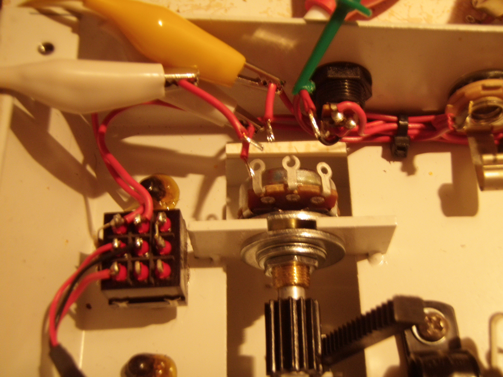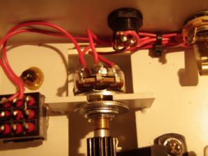 Here is a shot of the new pot with wires soldered into place. It’s important to use a HOT iron and to create good solder connections!