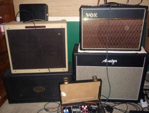 Stereo Out #1 -> VOX AC-15 w/ Greenback and Avatar 212 ext. cab w/ Vintage 30’s