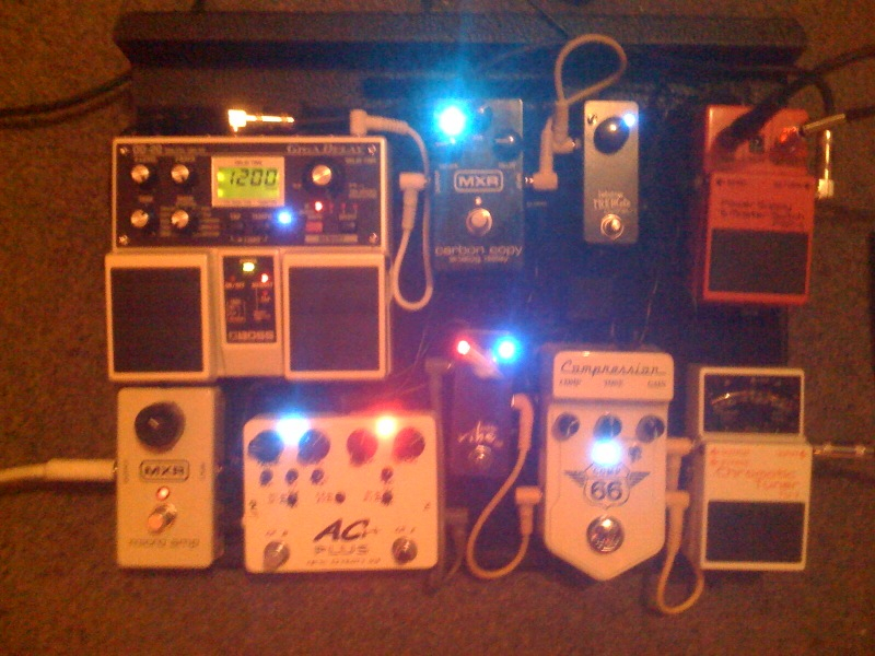 MXR Carbon Copy: Use this as my main delay. I have a big box Deluxe Memory Man and I must say it sounds fantastic, but this guy is great as well. The modulation is pretty nice and it fits on the board!
