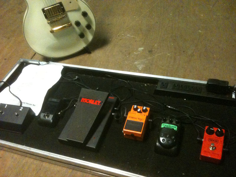 Today’s pedal line is from Lamont Caldwell. If you have a pedal line (doesn’t have to be in a board) for your rig, please email me a photo, bio, description of pedals and routing to pedalline@nulleffectsbay.com. Every Friday I’ll showcase a pedal line submission. Make sure you include any links to your band or music page.