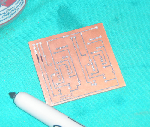 I used double sided copper clad from Radio Shack (if you can, find/use single sided copper clad). I used double sided.. because that is all I can get here. I’ll be ordering some thinner single sided copper clad in the future via eBay.