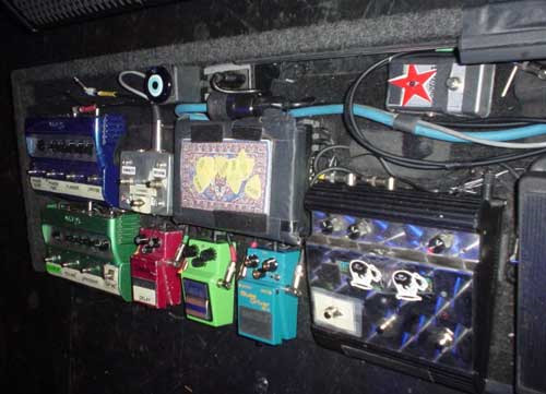 http://img214.imageshack.us/img214/8232/383868873415693109aao.jpg – heres a pic i have from the 2009 berlin concert i was to. I definately recognize a Boss Super Chorus on there aswell… not sure about the other ones.