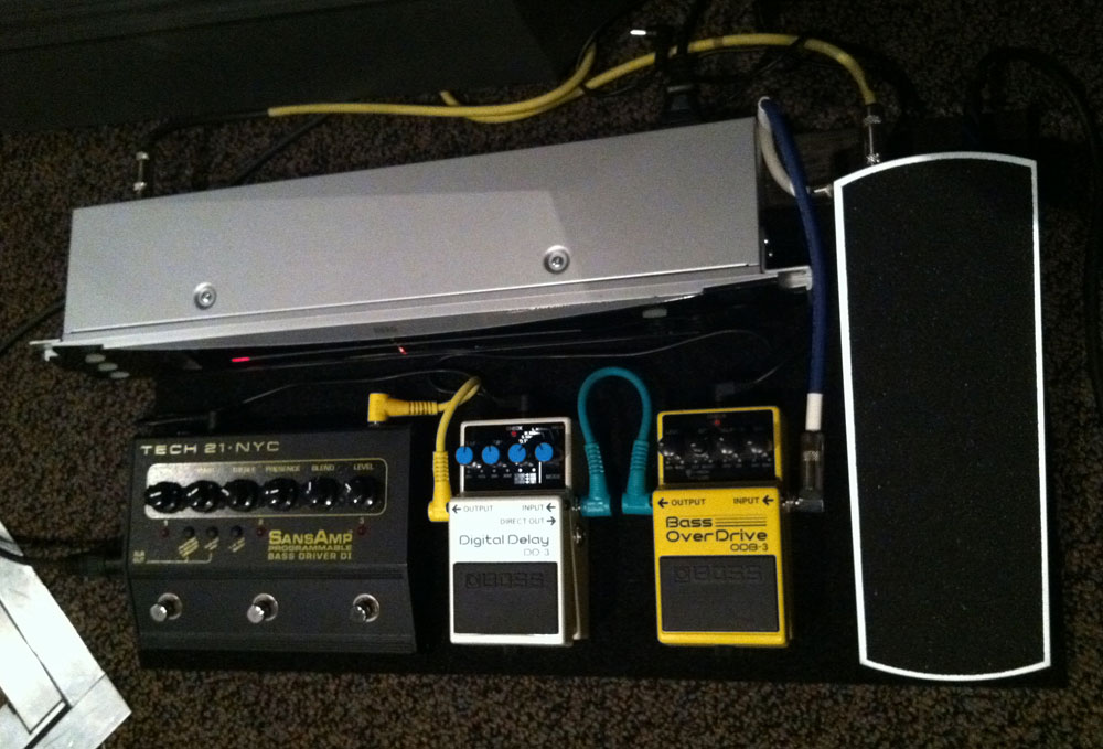Hello, here is my humble submission for your pedal line Friday. This is my setup that I use at my church. I am the bass player for the praise team at Lebanon Family Church in Lebanon, Mo. We play contemporary music including Planetshakers, Hillsong, Generation Unleashed just to name a few.