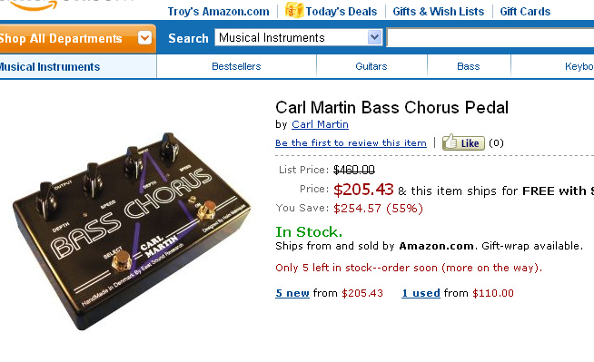 Again, the Carl Martin Bass Chorus is on sale for a great price of $205.43 at Amazon.com. Get it while you can!