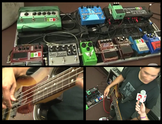 Juan went into detail on some of the pedals, but passed over a few. I went ahead and broke down all the pedals on the board. He was showing off his Fender fretless bass as well, which threw me off for a second – sounds like a fretless but with frets? He’ll explain it in the video below.