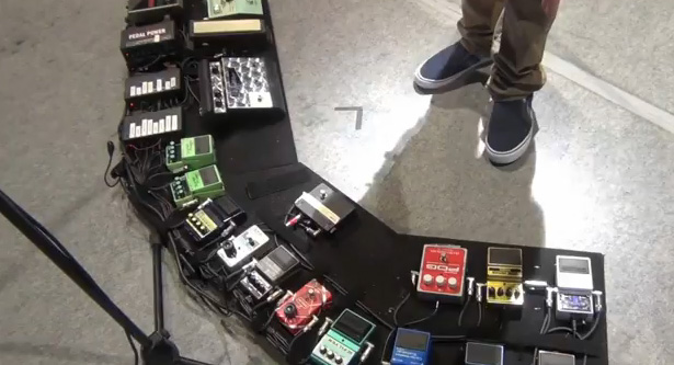 Getting my daily GuitarSquid on, I came across a video (2 parts) of Mike Einziger (of Incubus) talking about his gear (guitar, pedals and amps). It was an interesting setup with a custom pedal board/configuration. Mike is a guy that definitely knows how to control and manipulate is guitar sound, so I wanted to re-post with a break down of pedals currently on his board for this tour. There were a couple of pedals I wasn’t 100% sure on. If you have more information, please contact me or comment the below. The pedals in question were the DOD FX25B and the Wah. The wah definitely looks like a Dunlop ‘style’ enclosure, but I cannot tell if that’s stock white grip from another builder, or tape applied to a standard GCB-95.