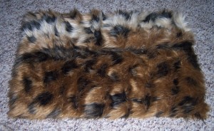 There’s more, one more very important piece… the board! I made it out of a chunk of plywood I had kicking around. I put one long leg on the back to angle it and a riser in the opposite angle on the top, back to flatten and raise the resting place for the back pedals. I hot glued very heavy cloth I picked up from a fabric store. It’s a long haired, shag, animal pattern fur. I’ve secured all my stomp boxes to it with zap straps. If you’re really daring, you can drill two holes in the bottom of your pedals to attach the zap straps, so you can’t see them. I only did this with one, the Rat.