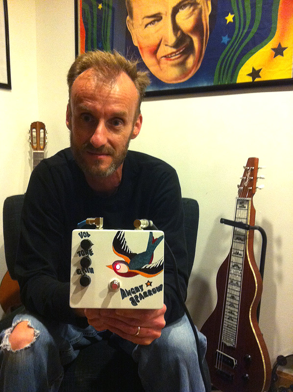 That is one Angry Sparrow that arrived in the mail today! Thank you very much for your fascinating blog & giveaway. Thanks to Richard Flickinger for a fantastic pedal that doubles as a piece of art!