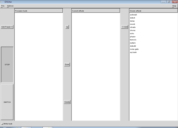 Next you’ll need a software application called Gnuitar. I’m a Linux user so I went looking for a cross-platform solution that works on both Windows and Linux (and I think Mac as well). It’s free and it requires no setting up whatsoever (other than selecting your effects). You just need to connect your guitar to your laptop (or any computer) as explained above and run the application. You’ll see a start button that will trigger the program to start outputting the incoming guitar signal through the speakers. Finally, you’ll notice a very diverse set of effects to choose from : (i) two different distortion settings (ii) tremolo (iii) whammy (iv) wah-wah (v) reverb (vi) chorus and so on – plus some filters to help weed out any unwanted noise.