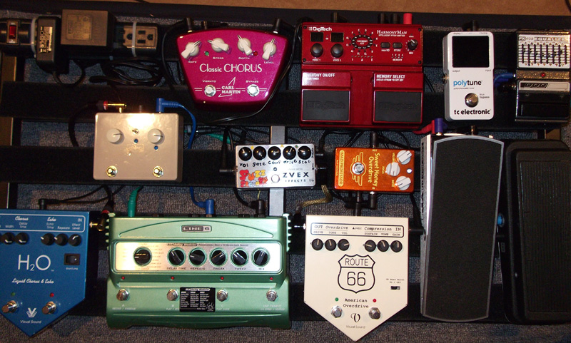 * Visual Sound Route66 * – Another one of my original pedals. Combination Compressor (based on the Ross and the MXR Dyna Comp) and a Overdrive that’s a TS-808 clone with a bass boost, which I keep on. One of these effects is usually on at all times.