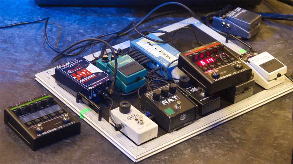 Today, I wanted to break down Sune Rose Wagner’s board. For those of you that are familiar with the Raveonettes, you’ll see some of the pieces of his tone puzzle. I want to note that this photo is the most recent I could find (2009). There are some TC Electronic pedals there, but this looks to be Sune trying out some TC Electronic samples. I’ll still include them in the breakdown though.