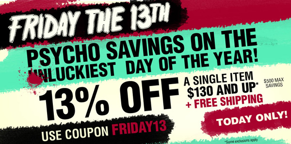 Just got word that Musician’s Friend is having a Friday the 13th Sale today. Take 13% off a single item over $130. Use the following coupon code at checkout: FRIDAY13. This sale will be valid for 1/13/12 only, so if you want get on the action, you’ll have to do so today. For full details click here or the banner below.