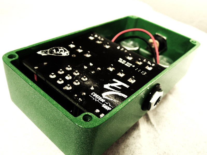 Our PCB’s are well designed with fully grounded surface, I designed the pedals to be in between vintage style built and modern style, we use SMD components resistors which are more durable and accurate than standard cheap resistors and we use thru hole capacitors which are a lot better than SMD capacitors so we use the best of the two worlds, most of the polarity caps are tantalum polyester caps which are a lot more higher grade caps than most standard electrolytic capacitors, more over the pots are not soldered on the PCB, they are hand mounted on the box and soldered by hand to the PCB just like on those high grade tube amps, the foot switch is from Germany and the jacks are made by Neutrik – all of this makes a pedal which is %100 the highest quality you could get from both vintage and modern aspects, the best sound you could get with minimum background noise.