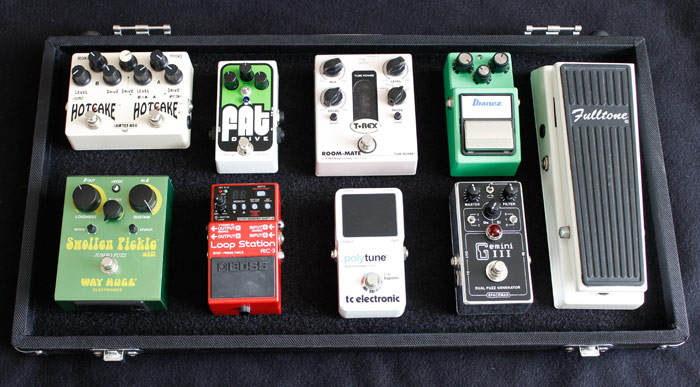 pedals in certain places, but most of all the overall the quality was just bad. They were the kind of thing that looks good at a distance or on the internet, but when you get up close, they’re just poorly thought out and poorly made. I hate that.The alternative was to have a custom made board and flight case made. The problem with them is that the case is usually way bigger than the board, the board has to come out of the case, the case has to be stored in the garage…because my girlfriend really doesn’t like them, and they damage the interior of your car. I wanted a more elegant solution.