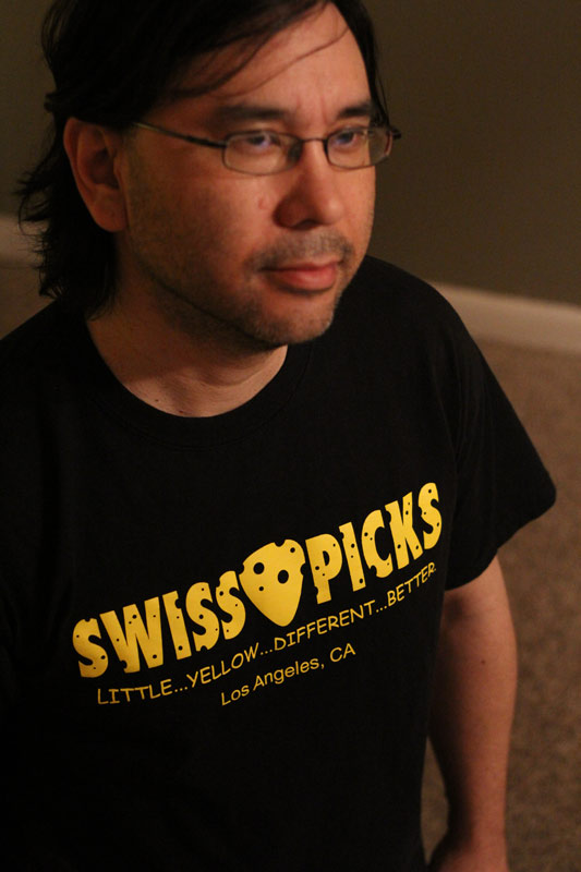 First up, was Fusion/Jazz ace Julian Coryell, who was floored by it. This guy just glides over the strings, using a sweep/economy picking style like Frank Gambale. Julian put in his Swiss Picks order right there. He was sold.