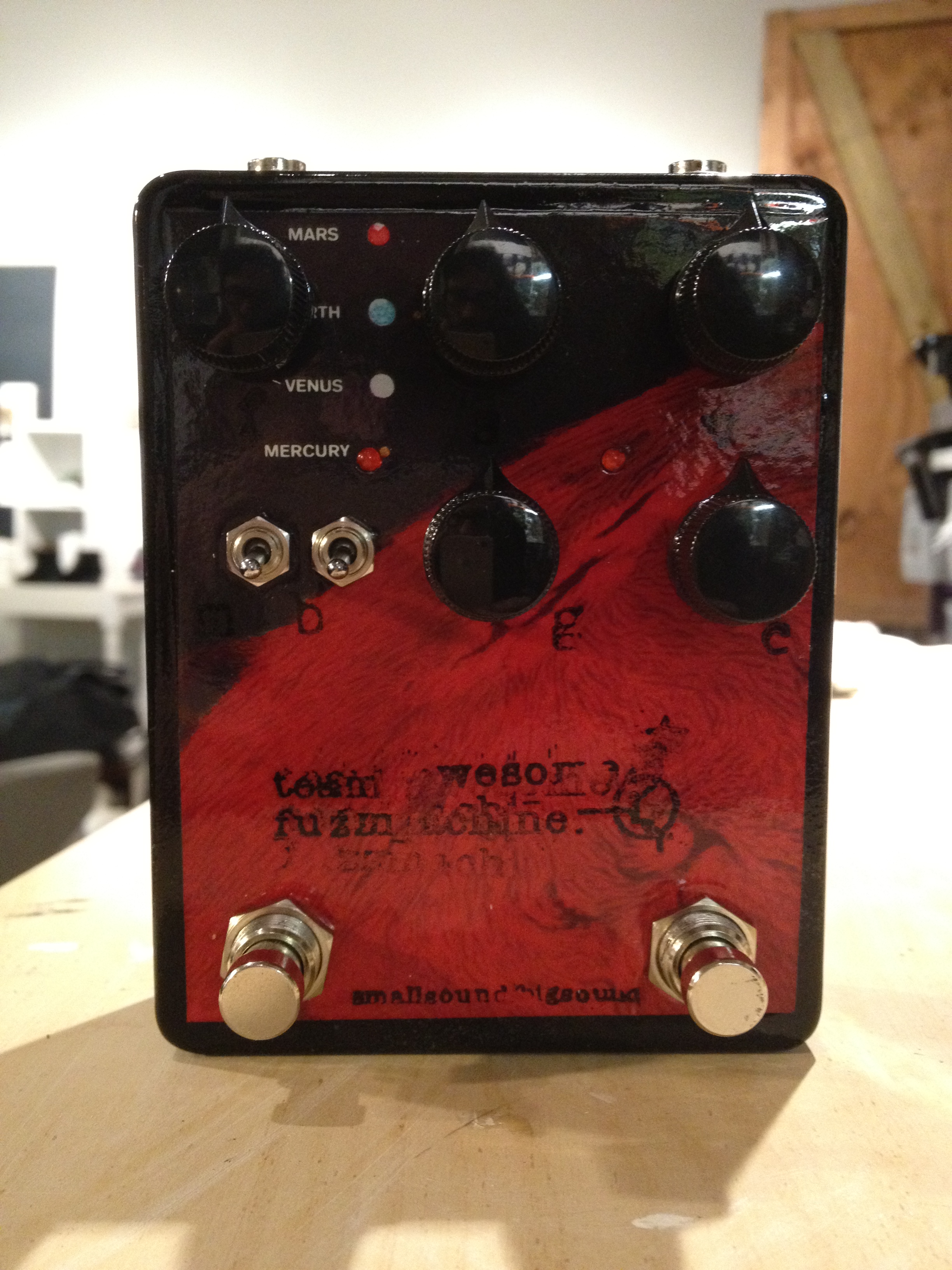 Out of college, Brian started a stint with the band, “Bon Savants.† Brian noticed band’s bass player using an old green Big Muff, a splitter pedal, and a few other knick-knacks to get his tone, which seemed a bit much to fiddle with. So, Brian suggested a single box with a few tweaks to get the desired sound. After some tinkering and adding a clean blend control, the first iteration of what would become the “Team Awesome! Fuzzmachine†was complete. It sounded phenomenal. Around this time, Brian relocated to Brooklyn. And pretty soon, he found himself building and modding pedals for friends and other musicians, drawing regional raves for their amazing tone and top notch quality. Most all musicians, me included, would rather being playing a gig than actually working a day job, but you gotta pay the rent.  So Brian decided that building pedals would be the best way to keep gigging, do something he really enjoyed, and earn a living. With that, he launched smallsound/bigsound, a name representing a combination of words he liked, coupled with the visual aesthetic of the lower case letters.