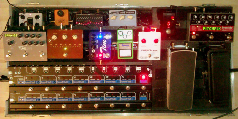 Initially I started with a rack system with Mesa Boogie preamps and power amps, but then I noticed I preferred the tone and response from certain pedals such as a Tubescreamer and Boss CS-2 Compressor; therefore, I used those pedals in conjunction with my rack gear. The pedals then started to build up and before I knew it I was encasing my favourite stomp boxes in a rack system too (this was operated via GCX Switch System). Plus, I love Marshall Plexi 100 heads and I was running two into Palmer Speaker Simulators and that was fed via XLR cables into an A-B box; I would switch between heads which would go into a Lexicon MPX1 and then stereo out into a Mesa Boogie 50/50.The size of my rack was gargantuan and as tall as a refrigerator.