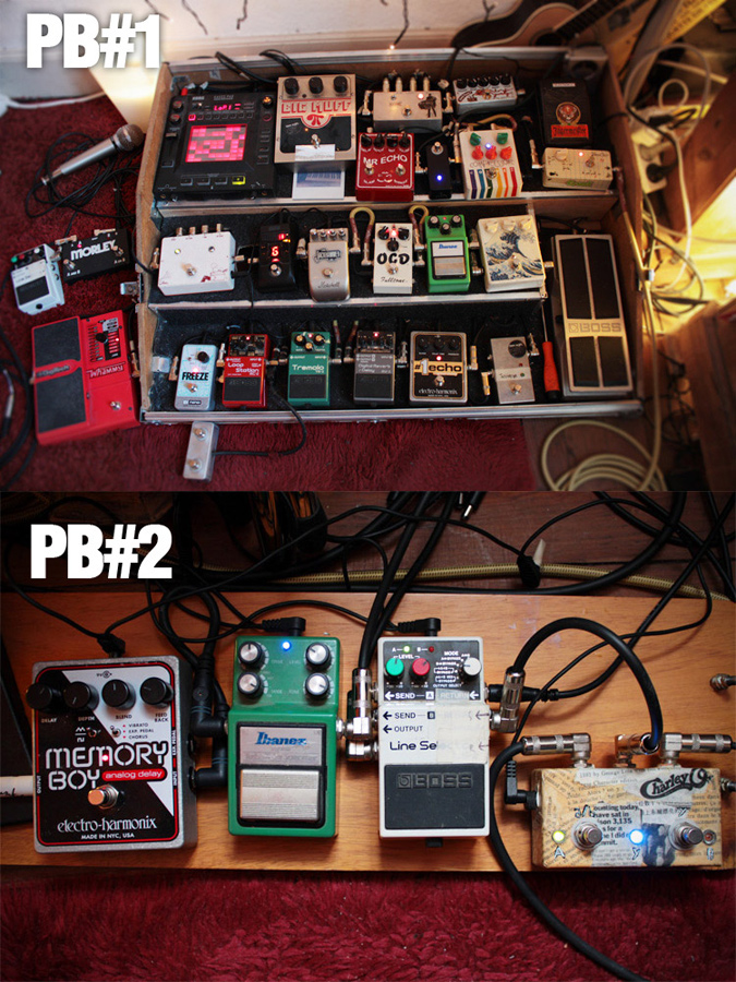 So basically the first board is for both my guitars (Fender Jazzmaster & an old Alan Scott’s electro accoustic guitar), and the second board is for Voice/Toy Keyboard/Mandolin/Hurdy Gurdy… I play mainly for my solo ambient/post-rock instrumental project called Hors Sujet, and you can find all the latest news here: www.facebook.com/horssujetmusic