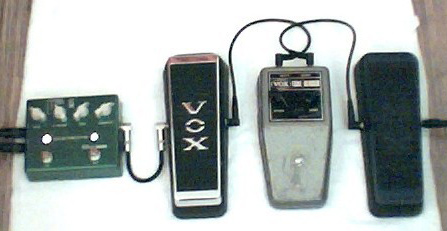 Hello Effects Bay !!! My name is Thomas Samuel Orr and I am a Voxaholic. This is my simple (yet effective) all Vox set-up… First thing I plug an Italian made 1966 Vox Mark VI teardrop guitar into pedal #1 which is a Model V850 Vox 250 K Audio Taper Volume Pedal made in U.S.A. When I want to go from a clean tone to a dirty tone I put this pedal to the metal. Next in line is a 1968 V828 Vox Tone Bender. (It would be/should be the first in line except in this case where the first pedal is only a volume pedal then it’s OK). This fuzz unit is all original with 2 Germanium transistors (an SFT 337 & an SFT 363E) made in Italy. It functions best with a Heavy Duty Zinc Chloride 9V battery in there! This pedal is featured a lot on my second album “Songs of Love and Sadness 2”. Check out the track “Smoke Pot” to hear how fuzzy things can get. Next is a new, stock, un-modded Vox Wah-Wah pedal Model V847A made in China. Sometimes used in a fixed position as a Midrange Resonant Boost control on recordings. The 3 position MRB effect was built-in on vintage solid state Vox amps. I abuse the pedal on the track, “Good Images”. Lastly is a Vox Joe Satriani Time Machine Delay Pedal. Made in Japan. I made use of this pedal on my latest single “Shimmery Pop”. It has 2 outputs (1 wet, 1 dry) that can be run through 2 different amps for a cool stereo sound… and yes… the amps are Vox too. Low-watt Valvetronix Series combos for studio use & AD100VTH 1/2 stacks live. Not shown: the VFS Foot Switch for the AD100VTH.