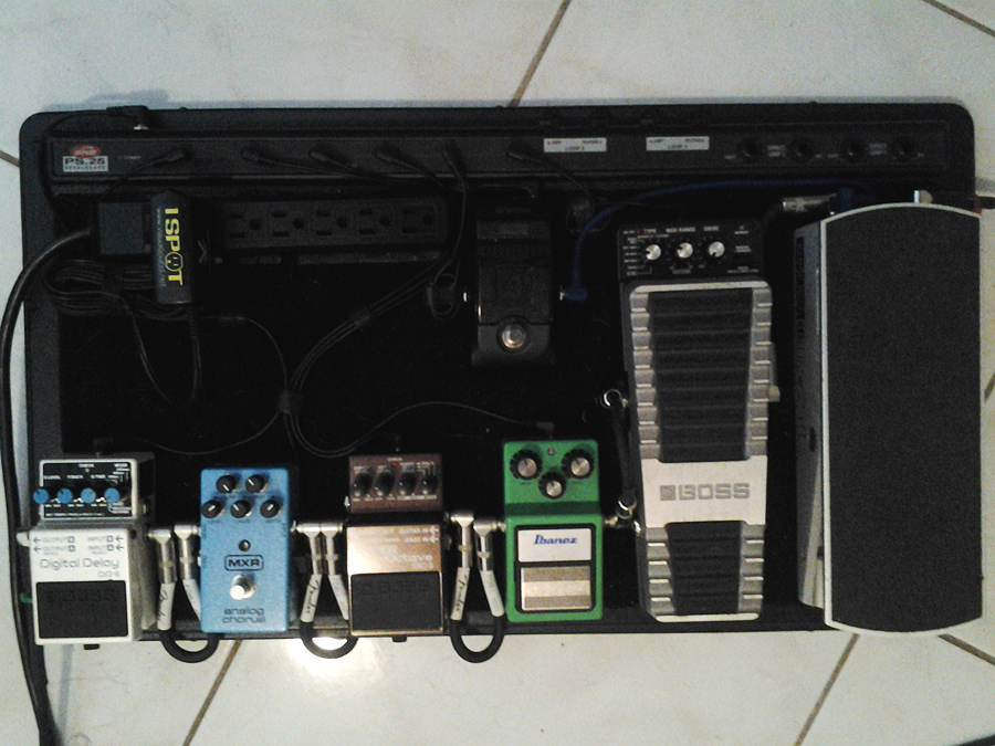At this point in the line my signal will pass through a Boss GE7 and RV3. I leave them on all the time so I took them off the board.