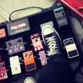 My current “A” guitar is a late nineties butterscotch Fender Telesonic). All pedals powered by a 1Spot with a 8 plug chain. Â I am sponsored by Monster Cable so I use their leads to and from the board.