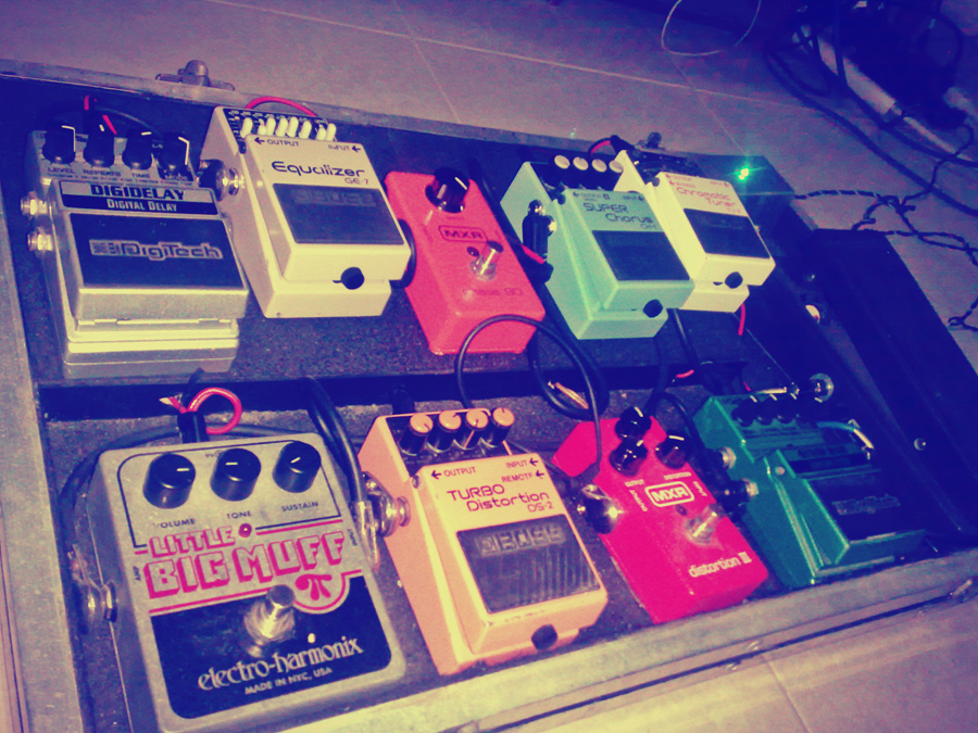 Here’s my pedalboard. Nothing fancy whatsoever but for me it has what’s necessary for the fuzzed out tones, overdrives and modulation effects used on my band Chalana’s self titled record (Stoner Rock/Metal from South America).