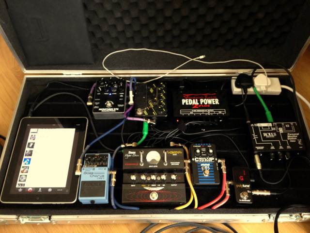 I’m Rich, the bass player with the band MG & The Juggernaut, in the UK & I wanted to show you my current board with a few of the awesome pedals i use..