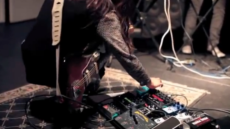 Sarah Lipstate of Noveller is a fantastic guitar player. One of my favs for sure. She utilizes loopers and pile of pedals to create pure mesmerizing sonic art. Like I mentioned, to create the sound-scape, she needs a variety of pedals from drives to modulation to delays to reverbs and controlling it all with her Boomerang Phrase Sampler. When these stack up, real estate on the pedalboard gets limited. Normally, when she’s on tour, it’s not a big deal, but currently she’s on tour in Europe (check out the dates).