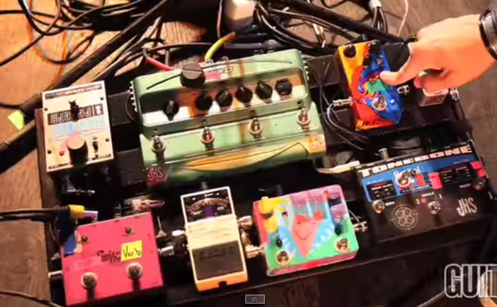 Clearly, Drew is all about JHS Pedals, which is cool, and it was interesting to see many JHS modified pedals on his board as well.