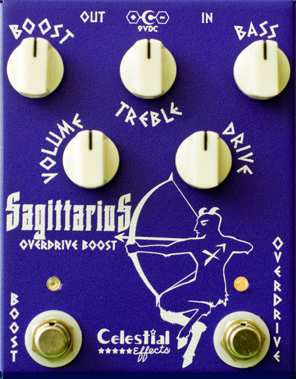 Today I received a press release from Celestial Effects and definitely wanted to share. I absolutely love their pedals, and they definitely crank out the quality. Their new release is the Celestial Effects Sagittarius Overdrive Boost!