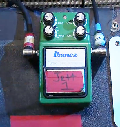 Yep, Turbo TS is all she runs. That classic Runaways / Blackhearts sound is based off of a tube screamer, her HD130 Music Man amp and her Gibson Melody Maker. Classic rock.. at it’s best.