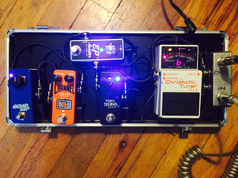 Today’s Pedal Line Friday submission is from Scott Lehman. If you have a pedal line (doesn’t have to be in a board) for your rig, please email me a photo, bio, description of pedals and routing to pedalline@nulleffectsbay.com. Every Friday I’ll showcase a pedal line submission. Make sure you include any links to your band or music page.
