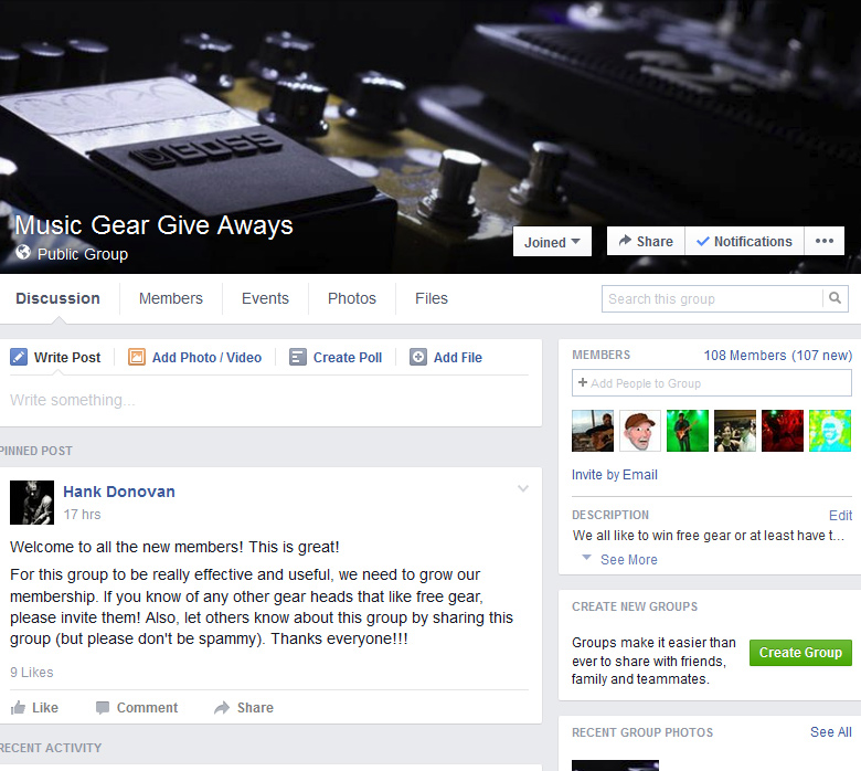 Because of this, I thought I would create a Facebook group for Music Gear Give Aways. I wanted to create a central group where the public can add give aways from other sites and promotions. Also, I wanted this to be a group where builders can also announce their special / direct give aways as well. I started this group just last week, and membership has been growing, but for this to really be successful, we need to get a large membership base. If you’re into give aways, please join, but also, if you know of any others that might be interested, please let them know!