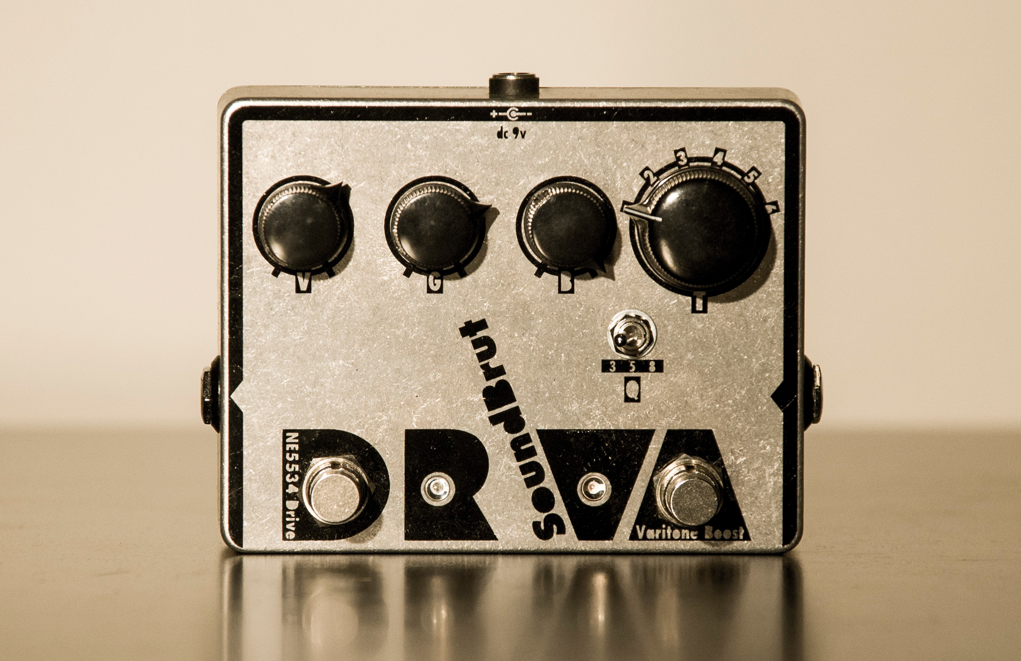 DrVa is the first effects unit developed by Stockholm-based company SoundBrut. It is a hard-clipping overdrive and MOSFET clean boost, coupled with a custom tone circuit with 18 voicings.