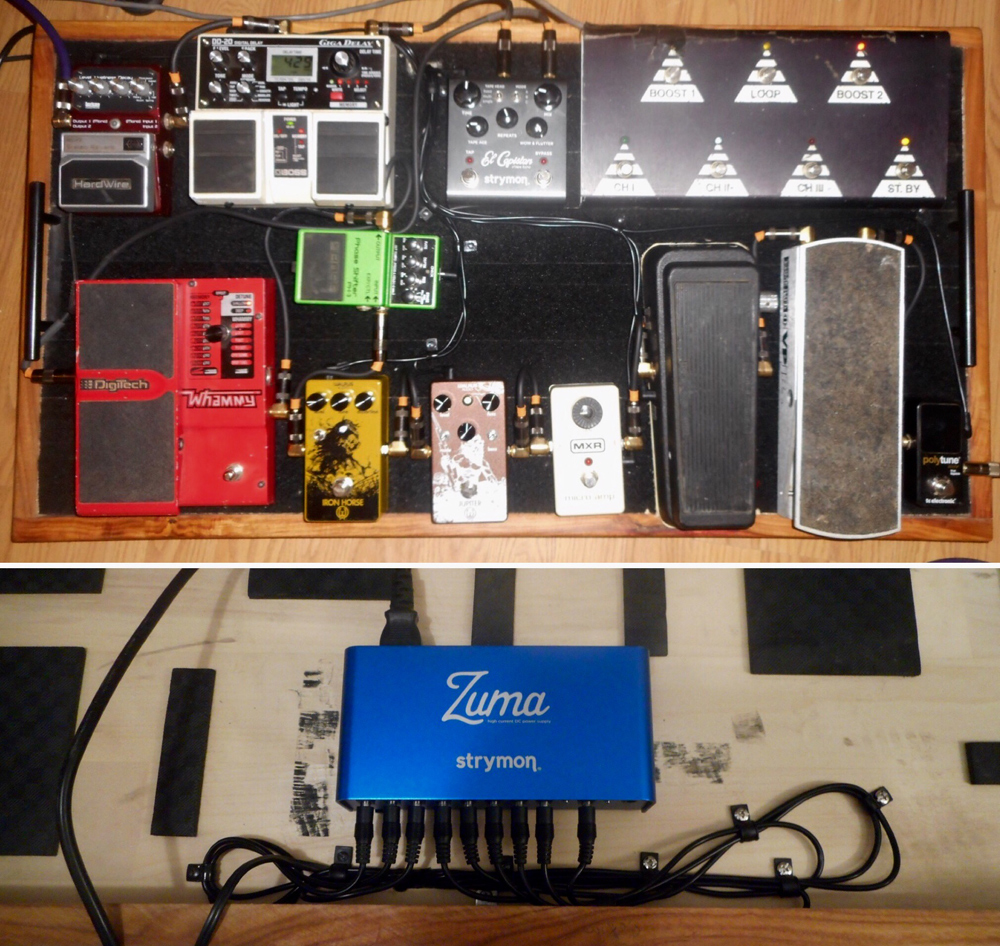 Digitech Whammy IV (I think) – this is the only pedal not powered by the Zuma. I primarily use it with the Ebow to get some crazy other worldly sounds for looping. Otherwise, I don’t use it for regular play too much.
