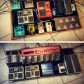 Today’s Pedal Line Friday submission is from Mark Grundhoefer. If you have a pedal line (doesn’t have to be in a board) for your rig, please email me a photo, bio, description of pedals and routing to pedalline@nulleffectsbay.com. Every Friday I’ll showcase a pedal line submission. Make sure you include any links to your band or music page.