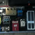 One red pedal is a Seymour Duncan Killing Floor, and the other looks like a Shins Music Dumbloid of some kind.