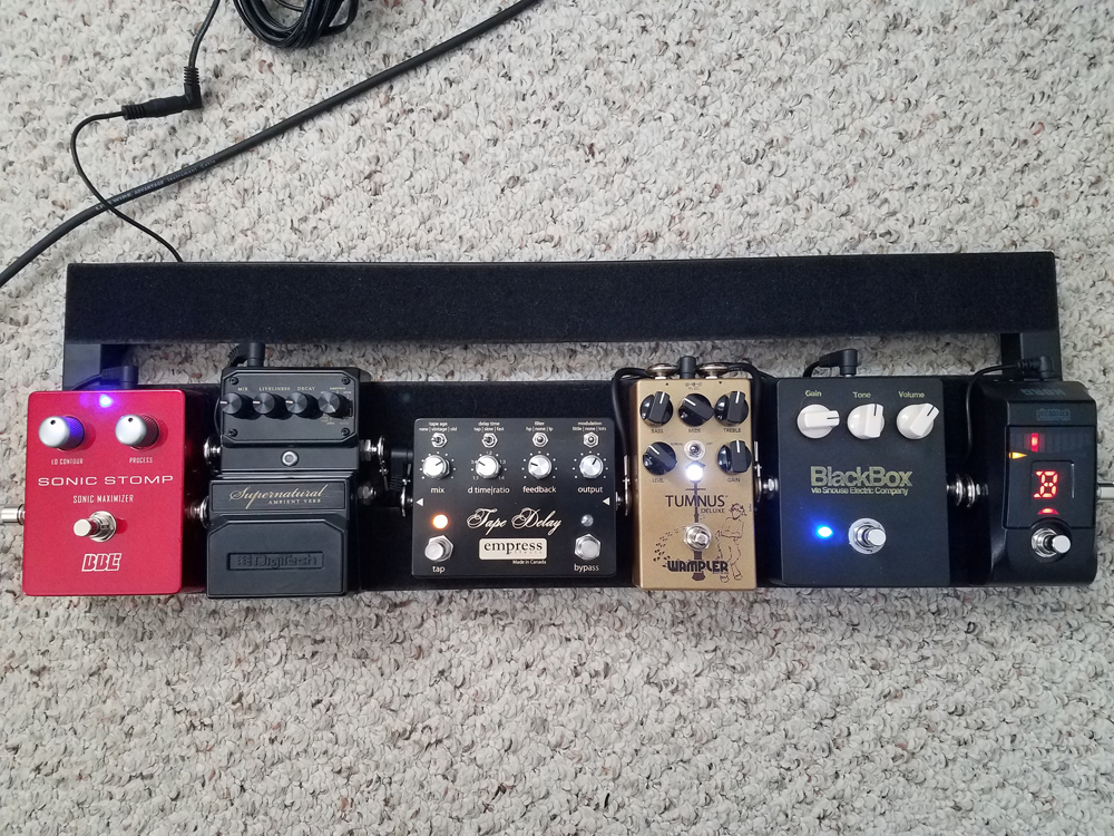 Wampler Tumnus Deluxe: Newest addition to the board – perfectly fit into the space I had for it – love it so far, especially the 3-band eq.