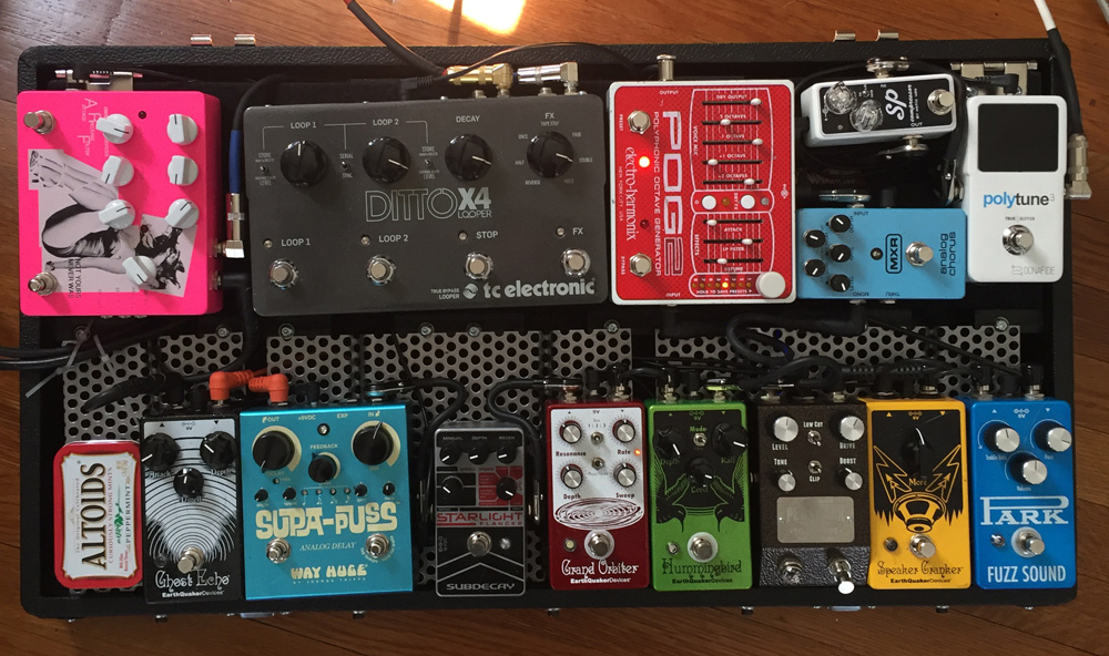 EQD Park Fuzz Sound – A solid vintage-voiced fuzz, but it can get kind of gated-sputtery sound at the right settings. Even when it’s dimed (which it usually is), it retains a lot of note definition so I tend to stack it with my other gain pedals for leads, but we have a few songs where I switch it on for big power-chord kind of moments.