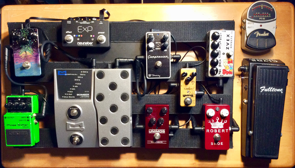Today’s Pedal Line Friday submission is from Kane Janowsky. If you have a pedal line (doesn’t have to be in a board) for your rig, please email me a photo, bio, description of pedals and routing to pedalline@nulleffectsbay.com. Every Friday I’ll showcase a pedal line submission. Make sure you include any links to your band or music page.