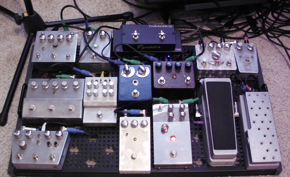 In the fx loop: Music PCB Gristleiser > Electric Druid Multi-Flange > Tonepad Ross Phaser clone > HIGHLY modified,re-cased DOD chorus,circa 1980s > BYOC Ping-Pong Delay