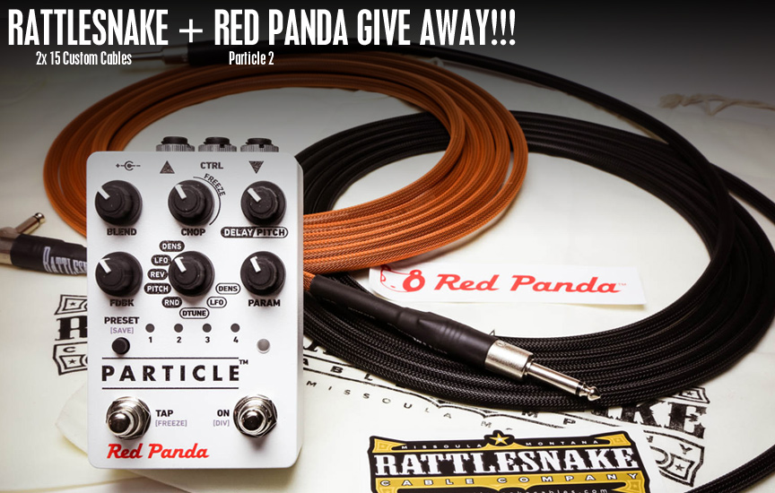 The give away is for a pair of Rattlesnake Cable Company 15′ Custom Cables with Neutrik Nickel Plugs. In addition, the give away also joins forces with the great people at Red Panda Labs. They’re offering up their Particle 2 Delay / Pitch Shifting Pedal. The total retail value of this give away is $419. As I mentioned, the give away is ending soon – it officially closes on June 10th, so don’t miss out on this one. You can also submit bonus entries (some daily) to increase your odds of winning. This give away is open to international submissions as well! Go here to enter!