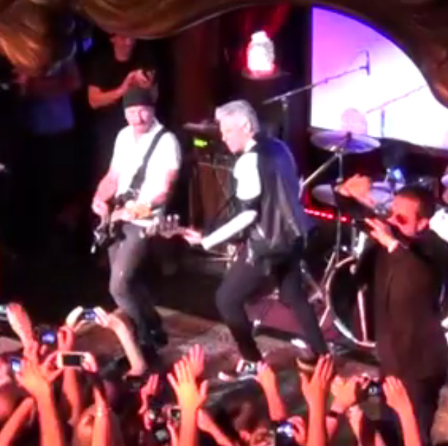 Today on Facebook, a post caught my eye – “Edge and Adam perform at @U2’s 20th Birthday Party”. Now, the first thing that was weird to me.. “20th Birthday Party”. The band has been together for 39 years (formed in 1976)… the B-Day was for the band. The cover band is Unforgettable Fire, a New York City Based U2 tribute band, and they had some special guests. They called up Dallas Schoo up to the stage. I figured about 2% of the crowd would even know who he was, and those for you here that don’t know, is the long time guitar tech for The Edge. So he came up to ‘look’ at the guitars, but then the crowd went crazy in this small venue with The Edge and Adam came on stage to play a couple of songs with the band.